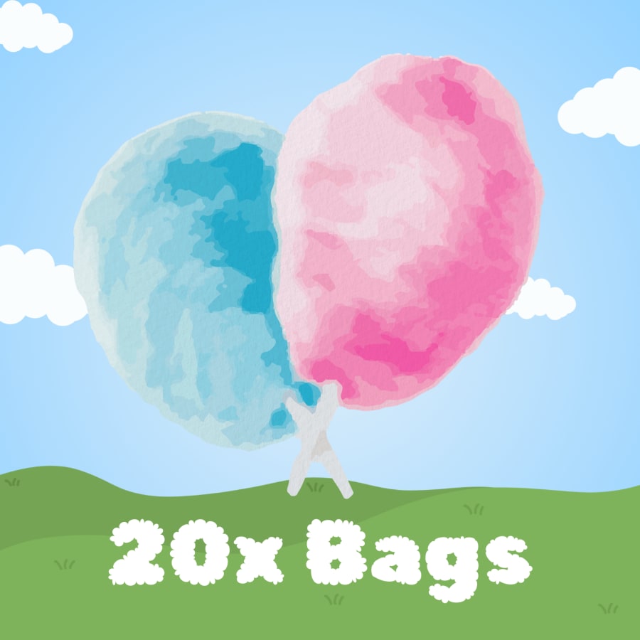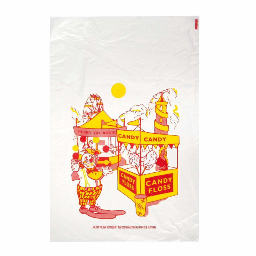 Our classic raspberry & Blue Raspberry flavour is available in attractive 12 x 18 Fairground candy floss bags. All candy floss bags are 100% recyclable. Enjoy Candy Floss straight out of the bag.