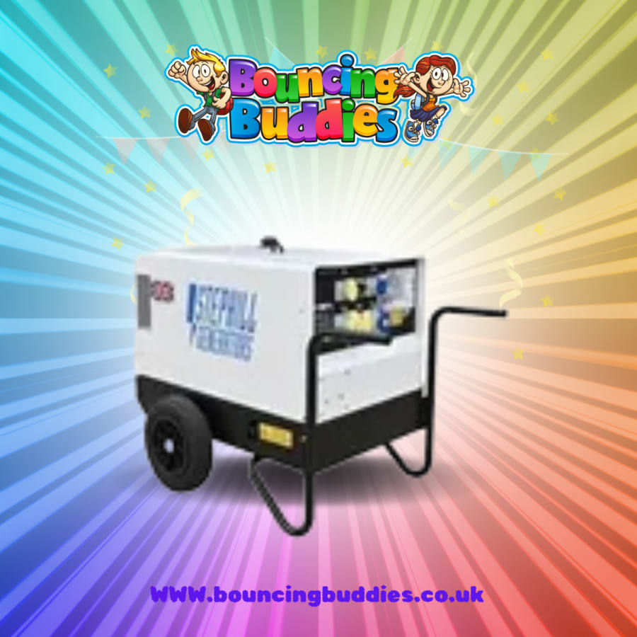 All generators are supplied with a full tank of diesel and must be returned with full tank of diesel refilled tank is included in the price shown below, powers around 4 inflatables for up to 6 hours depending on size of inflatable fans are required