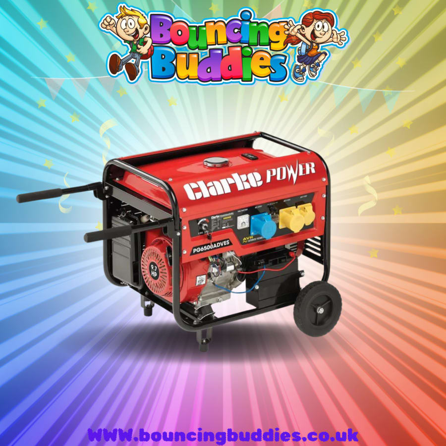 All our inflatables come with a plug in electric blower (fan) and the leads – but they do all require a power supply (standard house plug socket) – we understand in some situations that there is no power on-site, so you will need to hire a Generator. This will power up to 2 inflatables for up to 5hours meaning you can still hire out an inflatable at a facility that does not have electricity supplied. (Please allow the Generator to cool down before refilling) We only hire these out with our inflatables.