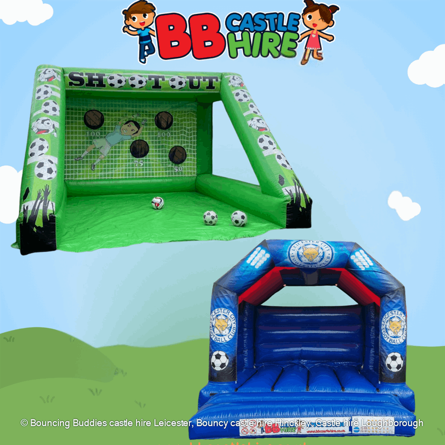 Bouncy castle hire Football Package 3 in Leicester, Market Harborough, Hinckley, Coalville, Loughborough delivers action-packed fun for kids. Perfect for children's party hire, school events and community fairs. Trusted locally with over 500 five-star reviews. Competitive prices. Reliable service. Dependable setup and collection. 🎉